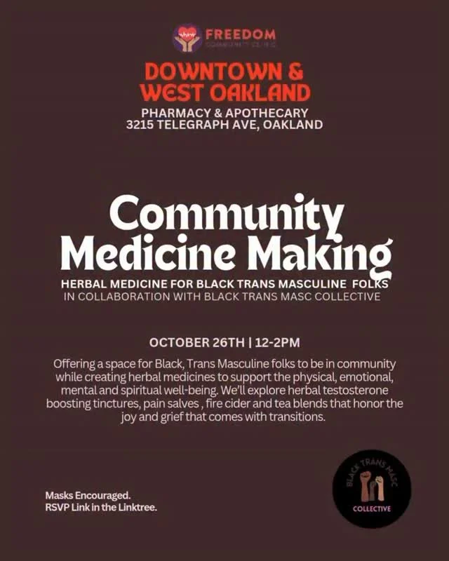 Our Telegraph location in Downtown Oakland serves primarily as a Community Pharmacy/Apothecary that provides free community medicine to the people.