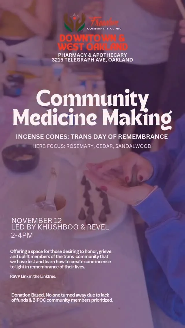 Our Telegraph location in Downtown Oakland serves primarily as a Community Pharmacy/Apothecary that provides free community medicine to the people.